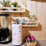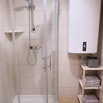 Wooden House Azbe Appartement heeft een terras en een kleedruimte en is ingericht met een bank en voorzieningen zoals een flatscreen TV met satellietzenders om van te genieten. Het 1-badkamer appartement bestaat uit 1 slaapkamer. Deze accommodatie omvat 1 badkamer met een apart toilet, een badkuip en een douche, waar een haardroger en handdoeken worden er ook verstrekt.