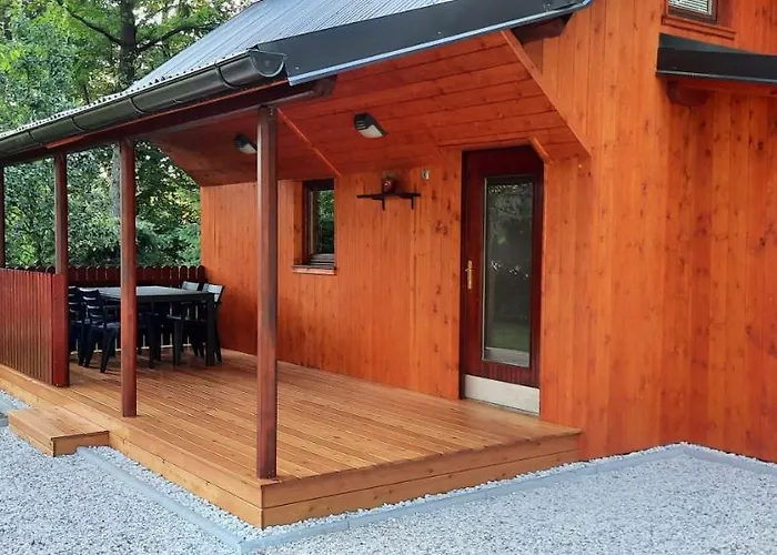 Tijdens een verblijf in Wooden House Azbe Appartement van 47 m^2 kunnen gasten zich ontspannen op een terras binnen 18 minuten wandelafstand van de Sint-Martinuskerk.